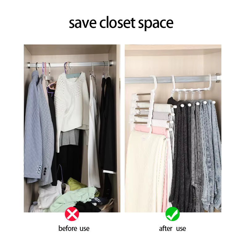 Di adiós al desorden y aprovecha cada rincón de tu armario con el Perchero Telescópico 5 en 1 de Acero Inoxidable.